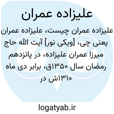 [ویکی نور] آیت الله حاج میرزا عمران علیزاده، در پانزدهم رمضان سال 1350ق، برابر دی ماه 1310ش در روستای غریب دوست شهرستان میانه، در یک خانواده متدین و زحمت کش چشم به جهان گشود.