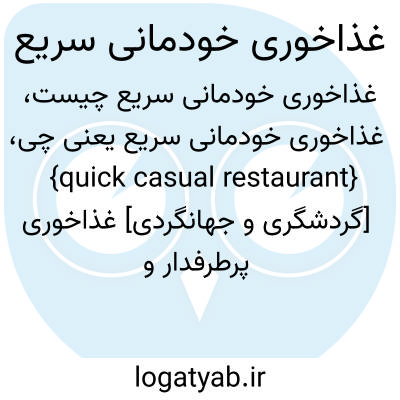{quick casual restaurant} [گردشگری و جهانگردی] غذاخوری پرطرفدار و دلپذیر که غذاهای آماده و تازه را همراه با خدمات مناسب در کمترین زمان عرضه می کند متـ. رستوران خودمانی سریع