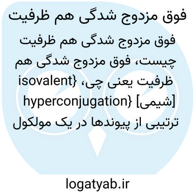 {isovalent hyperconjugation} [شیمی] ترتیبی از پیوندها در یک مولکول فوق مزدوج به گونه ای که تعداد پیوندها در دو ساختار رزونانسی یکسان است، اما یکی از ساختارها ازنظر انرژی نامساعدتر از دیگری است