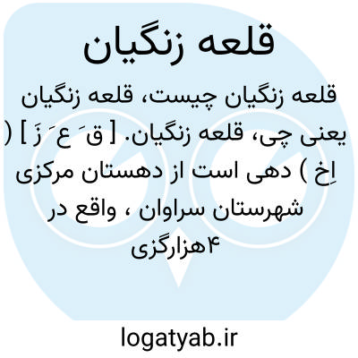 قلعه زنگیان. [ ق َ ع َ زَ ] ( اِخ ) دهی کوچکی است از دهستان گاوکان بخش جبال بارز شهرستان جیرفت، واقع در 100هزارگزی جنوب خاوری مسکون و سر راه مالرو سبزواران به نرماشیر سکنه آن 4 تن است. ( از فرهنگ جغرافیایی ایران ج 8 ).