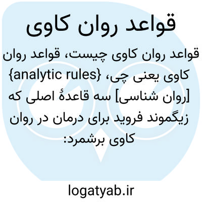 {analytic rules} [روان شناسی] سه قاعدۀ اصلی که زیگموند فروید برای درمان در روان کاوی برشمرد: تداعی آزاد، خویشتن داری، مقابله با کنش نمایی احساسات و رخدادها