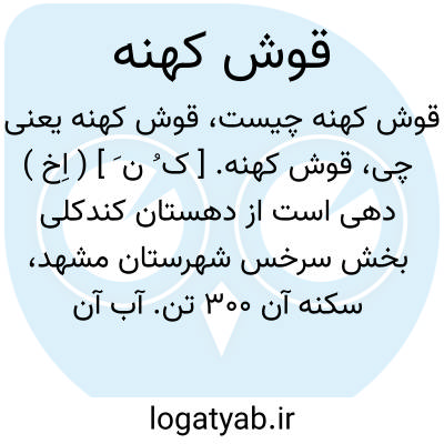 قوش کهنه. [ ک ُ ن َ ] ( اِخ ) دهی است از دهستان کندکلی بخش سرخس شهرستان مشهد، سکنه آن 300 تن. آب آن از قنات و رودخانه. محصول آن غلات. شغل اهالی آنجا زراعت است.راه مالرو دارد. ( از فرهنگ جغرافیایی ایران ج 9 ).