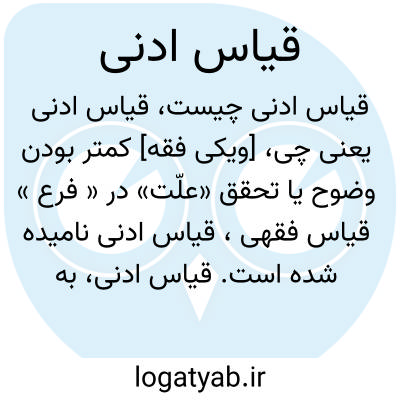 [ویکی فقه] کمتر بودن وضوح یا تحقق «علّت» در « فرع » قیاس فقهی، قیاس ادنی نامیده شده است.