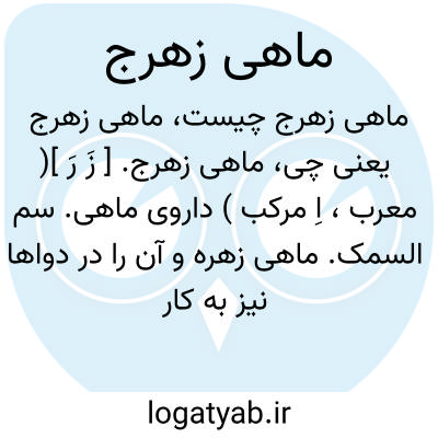 ماهی زهرج. [ زَ رَ ]( معرب، اِ مرکب ) داروی ماهی. سم السمک. ماهی زهره و آن را در دواها نیز به کار برند. ( یادداشت به خط مرحوم دهخدا ). نباتی است همچون شبرم، لیکن این دراز تر است و لون او اغبرگون است و بزردی گراید و گروهی او را از جمله یتوعات شمارند و ماهی زهره پوست بیخ اوست. نبات او را اندر آب افکنند ماهی که اندر آن باشند ضعیف شوند و بر سر آب افتند. ماهی زهره از بهر آن گویند یعنی زهر ماهی. ( ذخیره خوارزمشاهی، یادداشت به خط مرحوم دهخدا ). اسم فارسی است و به عربی سم السمک نامند وقسمی از قلومس است و به ترکی سقرقویروقی گویند. گیاهی است شیردار و برگش مفروش بر زمین و ساقش زیاده بر ذرعی و گلش زرد و در آخر ساق از جوانب آن به هیئت سرو و پوست ساق او مایل به زردی وبا اندک حدت و آن مستعمل است چون او راکوبیده در آب اندازند ماهی بی حس می گردد و بر روی آب آمده و می میرد. ( تحفه حکیم مؤمن ). گویند چون برگ این درخت در آب ریزند ماهیان سست گردند و لاغیه نیز چنین باشد. ( بحر الجواهر، یادداشت به خط مرحوم دهخدا ). برگش به تبرخون ماند چون در آب افکنند ماهی از بویش سست شود و بر سر آب افتد چنانکه آن را به دست صید توان کرد. ( نزهةالقلوب ). و رجوع به ماده بعد شود.