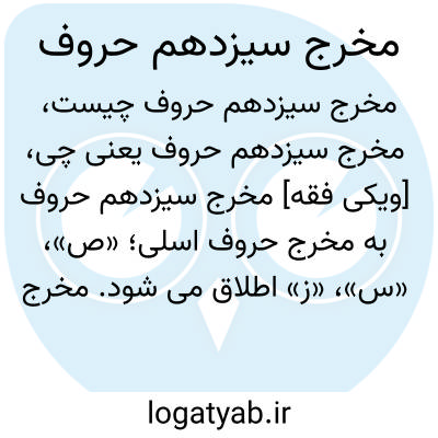 [ویکی فقه] مخرج سیزدهم حروف به مخرج حروف اسلی؛ «ص»، «س»، «ز» اطلاق می شود. مخرج سیزدهم از مخارج هفده گانه حروف، از موضع لسان ادا می شود و مخرج ادای سه حرف «ص»، «س»، «ز» است.ادای این حروف چنین است که نوک زبان به گونه ای با دندان های فک پایین برخورد می کند که میان سر زبان و دندان ها کمی فاصله پدید می آید.این سه حرف را حروف اسلی شمرده اند. عناوین مرتبط ۱. ↑ سیوطی، عبد الرحمان بن ابی بکر، الاتقان فی علوم القرآن، ج۱، ص۳۴۹. ...
