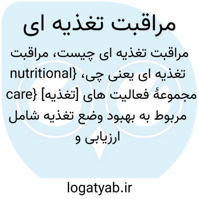 {nutritional care} [تغذیه] مجموعۀ فعالیت های مربوط به بهبود وضع تغذیه شامل ارزیابی و تشخیص و مداخله و پایش و ارزشیابی تغذیه ای