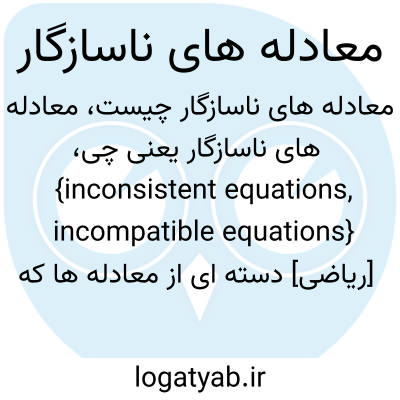 {inconsistent equations, incompatible equations} [ریاضی] دسته ای از معادله ها که به ازای هر مجموعه ای از مقادیر متغیرها دست کم یکی از آن معادله ها برقرار نباشد متـ. دستگاه معادله های ناسازگار inconsistent system of equations