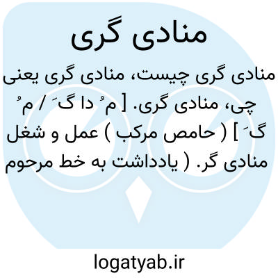 منادی گری. [ م ُ دا گ َ / م ُ گ َ ] ( حامص مرکب ) عمل و شغل منادی گر. ( یادداشت به خط مرحوم دهخدا ). رجوع به منادی گر شود.