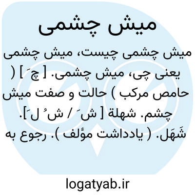 میش چشمی. [ چ َ ] ( حامص مرکب ) حالت و صفت میش چشم. شهلة [ ش َ / ش ُ ل َ]. شَهَل. ( یادداشت مؤلف ). رجوع به میش چشم شود.