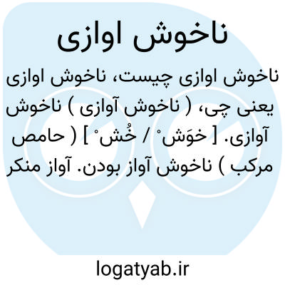 ( ناخوش آوازی ) ناخوش آوازی. [ خوَش ْ / خُش ْ ] ( حامص مرکب ) ناخوش آواز بودن. آواز منکر داشتن. آواز خوش نداشتن. صفت ناخوش آواز.