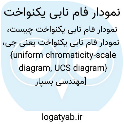 {uniform chromaticity-scale diagram, UCS diagram} [مهندسی بسپار علوم و فنّاورى رنگ] نوعی نمودار فام نابی که در آن فاصلۀ هندسی هر جفت رنگ قابل تفکیک که نورتابی (luminance ) برابر دارند، یکسان است