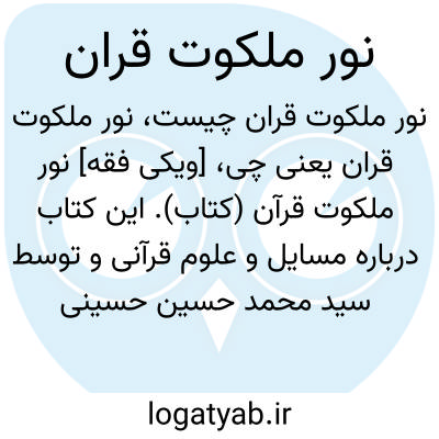 [ویکی فقه] نور ملکوت قرآن (کتاب). این کتاب درباره مسایل و علوم قرآنی و توسط سید محمد حسین حسینی طهرانی به زبان فارسی نوشته شده است.