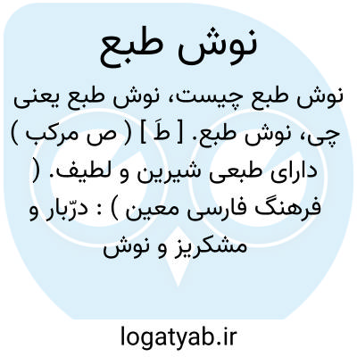 ( صفت ) دارای طبعی شیرین و لطیف: (( دربار و مشکریز و نوش طبع و زهر فعل جانفروز و دلشگا و غمزدا و لهو تن. ) ) ( منوچهری )