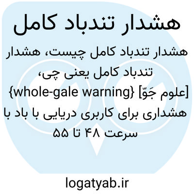 {whole-gale warning} [علوم جَوّ] هشداری برای کاربری دریایی با باد با سرعت 48 تا 55 گره یا نیروی بوفورت 10