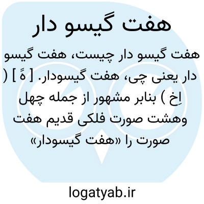 هفت گیسودار. [ هََ ] ( اِخ ) بنابر مشهور از جمله چهل وهشت صورت فلکی قدیم هفت صورت را «هفت گیسودار» نامیده اند: عواء، ذات الکرسی، حامل رأس الغول، مسک الاعنه، مراءةالمسلسلة، جبار ( که آن را جوزا نیز گویند ) و سنبله. ( از رساله «شماره هفت و هفت پیکر نظامی » تألیف معین ص 30 ). کنایه از هفت بنده است، و هفت ستاره را نیز گویند که سبعه سیاره باشد. || هفت آسمان را هم گفته اند. ( برهان ).