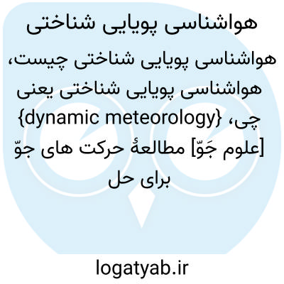 {dynamic meteorology} [علوم جَوّ] مطالعۀ حرکت های جوّ برای حل معادله های بنیادی آب پویایی شناسی یا سایر دستگاه های معادله های مربوط به حالت های ویژه، مانند نظریۀ آماری تلاطم متـ. هواشناسی دینامیکی