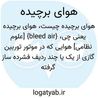 {bleed air} [علوم نظامی] هوایی که در موتور توربین گازی از یک یا چند ردیف فشرده ساز گرفته می شود و از آن برای یخ زدایی و فشرده سازی هوای اتاقک خلبان و گرمایش یا سرمایش استفاده می کنند