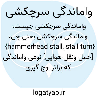 {hammerhead stall, stall turn} [حمل ونقل هوایی] نوعی واماندگی که براثر اوج گیری هواپیما با زاویۀ بسیار تند و حداقل توان موتور ایجاد می شود و همراه با حداکثر جابه جایی سکان عمودی و چرخشی سریع حول محور انحراف سمت (yaw axis ) است و پس از آن هواپیما به وضعیت شیرجه درمی آید و فروخیز می...