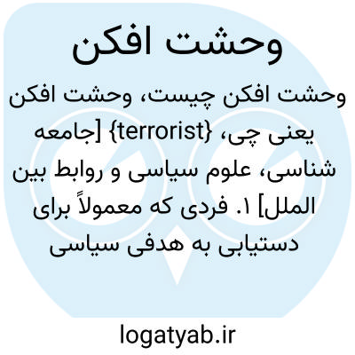 {terrorist} [جامعه شناسی، علوم سیاسی و روابط بین الملل] 1. فردی که معمولاً برای دستیابی به هدفی سیاسی وحشت افکنی می کند 2. منسوب به فرد یا سازمانی که وحشت افکنی می کند