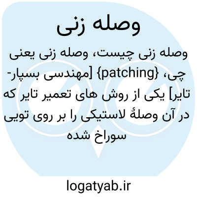 {patching} [مهندسی بسپار- تایر] یکی از روش های تعمیر تایر که در آن وصلۀ لاستیکی را بر روی تویی سوراخ شده می چسبانند