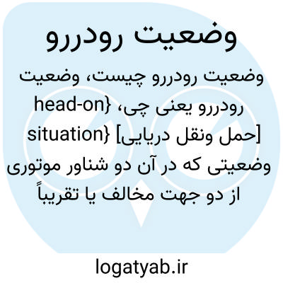 {head-on situation} [حمل ونقل دریایی] وضعیتی که در آن دو شناور موتوری از دو جهت مخالف یا تقریباً مخالف به یکدیگر نزدیک می شوند