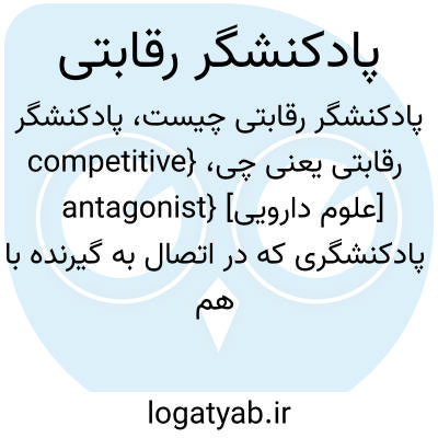 {competitive antagonist} [علوم دارویی] پادکنشگری که در اتصال به گیرنده با هم کنشگر رقابت می کند و می تواند سبب کاهش یا حذف اثر هم کنشگر شود