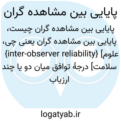 {inter-observer reliability} [علوم سلامت] درجۀ توافق میان دو یا چند ارزیاب که از اطلاعات یکسان از واحدهای تحلیل یکسان استفاده می کنند متـ. پایایی بین ارزیابان inter-rater reliability