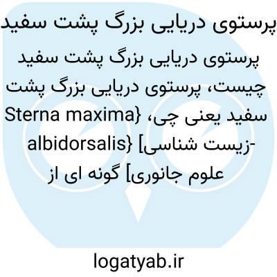 {Sterna maxima albidorsalis} [زیست شناسی- علوم جانوری] گونه ای از کاکائیان و راستۀ سلیم سانان که در مقایسه با دیگر پرندگان این تیره درشت اندام تر است و گردن و پشت سفید دارد