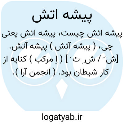( پیشه آتش ) پیشه آتش. [ش َ / ش ِ ت َ ] ( اِ مرکب ) کنایه از کار شیطان بود. ( انجمن آرا ). کنایه از کارهای شیطانی باشد. ( برهان ).