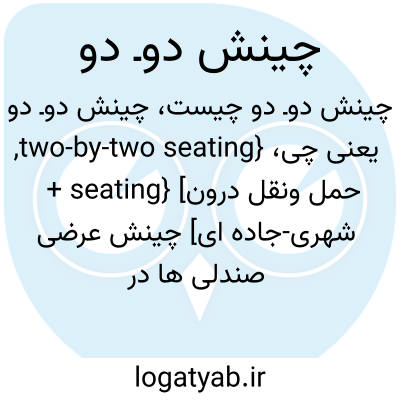 {two-by-two seating, + seating} [حمل ونقل درون شهری-جاده ای] چینش عرضی صندلی ها در وسایل نقلیۀ عمومی به نحوی که در هر ردیف دو صندلی در هر سوی راهرو قرار گیرد