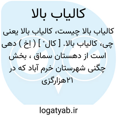 کالیاب بالا. [ کال ْ ] ( اِخ ) دهی است از دهستان سماق، بخش چگنی شهرستان خرم آباد که در 21هزارگزی باختر سراب دوره و 3 هزارگزی جنوبی اتومبیل رو خرم آباد به کوهدشت واقع است. تپه ای و ماهور و معتدل است و 180 تن سکنه دارد. آبش از چشمه تأمین میشود. محصولات آن غلات و لبنیات است. شغل اهالی زراعت و گله داری و صنایع دستی زنان سیاه چادر بافی است. راه اتومبیل رو ومعادن گچ و نمک دارد. سکنه آن از طایفه شاه کرمی و چادرنشین هستند. ( از فرهنگ جغرافیائی ایران ج 6 ).