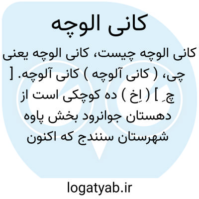 ( کانی آلوچه ) کانی آلوچه. [ چ ِ ] ( اِخ ) ده کوچکی است از دهستان جوانرود بخش پاوه شهرستان سنندج که اکنون مخروبه ای است. ( از فرهنگ جغرافیائی ایران ج 5 ).
