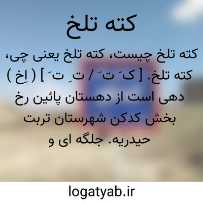 کته تلخ. [ ک َ ت َ / ت ِ ت َ ] ( اِخ ) دهی است از دهستان پائین رخ بخش کدکن شهرستان تربت حیدریه. جلگه ای و معتدل. سکنه آن 316 تن. آب آن از قنات. محصول آنجا غلات و چغندر شغل اهالی زراعت و گله داری. صنایع دستی آن کرباس بافی است. ( از فرهنگ جغرافیایی ایران ج 9 ).
