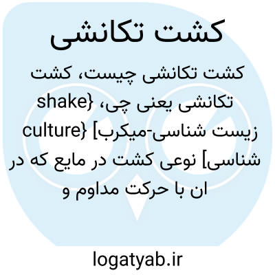 {shake culture} [زیست شناسی-میکرب شناسی] نوعی کشت در مایع که در ان با حرکت مداوم و هوادهی امکان رشد میکرب های هوازی فراهم می شود