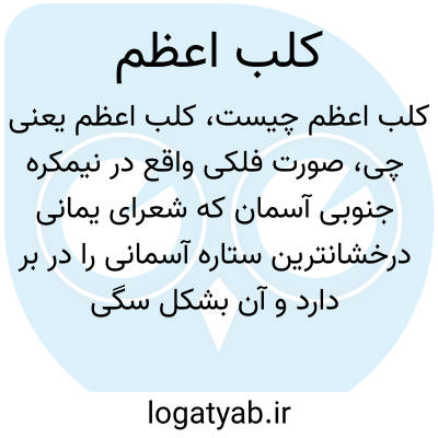 سگ بزرگ. یکی از صورت‌های فلکی جنوبی که به شکل سگ بزرگی فرض شده‌است و ستارة پُر نور و معروف آن شعرای یمانی یا تیشتر