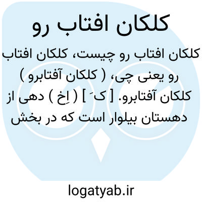 ( کلکان آفتابرو ) کلکان آفتابرو. [ ک َ ] ( اِخ ) دهی از دهستان بیلوار است که در بخش مرکزی شهرستان کرمانشاهان واقع است و 260 تن سکنه دارد. ( از فرهنگ جغرافیایی ایران ج 5 ).