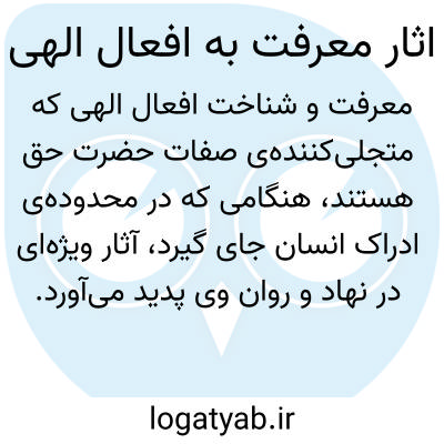 [ویکی فقه] آثار معرفت به افعال الهی. افعال الهی که جلوه هایی از صفات الهی هستند، در صورتی که مورد شناخت و ادراک انسان قرار گیرند، آثار ویژه ای در دل و روان و سپس در عمل و رفتار وی پدید می آورند.