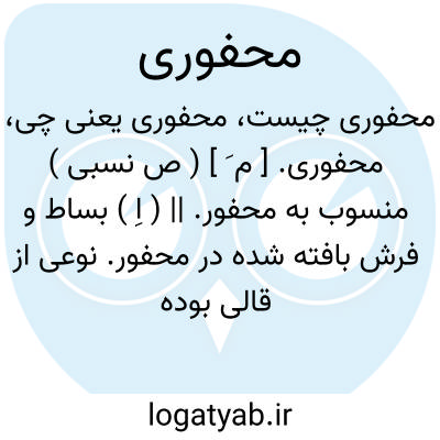 محفوری. [ م َ ] ( ص نسبی ) منسوب به محفور. || ( اِ ) بساط و فرش بافته شده در محفور. نوعی از قالی بوده است که بهترین آن را در ارمنیه می بافتند چه یکی از تحایف بیش بها که سلطان محمود به قدرخان فرستاده بود محفوری های ارمنی بوده است «: هودجها از دیباج منسوج و فرش های گران مایه از محفوریهای ارمنی و قالی های اویسی » ( زین الاخبار ) ( حواشی اقبال بر راحةالصدور ص 512 ). نوعی از جاجیم های پشمی منقش که از اران و گرجستان و نواحی خزر می آورده اند. ( حاشیه مجمل التواریخ چ مرحوم بهار ص 101 ). قالی. ( تفلیسی ): و شهری است بزرگ که خزر خوانند و آنجا بازرگانیها کنند و از همه ابواب آن بزرگتر است و آن را باب الابواب خوانند و این زیلوهای محفوری بدان شهرها بافند و آن را دربند خزران خوانند سوی ری و عراق افتد. ( ترجمه طبری بلعمی ). و پیغمبر را ( ص ) یک قطیفه بود که آن را زیر افکندی و برآن خفتی و قطیفه زیلو به عرب اندربافته سطبر همچون محفوری و نیز از آن سطبر ترشقران مولای پیغمبر ( ص ) آن قطیفه بیاورد و به گور اندرافکند. ( ترجمه طبری بلعمی ). و آبها از چشمه ها بیرون آورد [ هوشنگ ] و این فرشها که به زمین بگسترند از... شادروان و تخت وپلاس و محفوری آئین وی آورد. ( ترجمه طبری بلعمی ). همه محفوری های گوناگون که اندر همه جهان است از این سه ناحیت خیزد. ( حدودالعالم ). و چندان جامه و طرایف و زرینه و سیمینه و غلام و کنیزک و مشک و کافور و عناب و مروارید و محفوری و قالی و کیش و اصناف نعمت بود در این هدیه سوری که امیر و همه حاضران به تعجب بماندند. ( تاریخ بیهقی چ فیاض ص 412 ). محفوری و قالی هزار دست. ( تاریخ بیهقی ص 468 ). در صفه شادروانی نصب کنند و چند تا محفوری بیفکنند. ( تاریخ بیهقی ص 30 ).