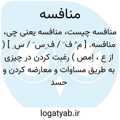 منافسه. [ م ُ ف َ / ف ِس َ / س ِ ] ( از ع، اِمص ) رغبت کردن در چیزی به طریق مساوات و معارضه کردن و حسد بردن. ( غیاث ). منافسة. مبارات. رغبت کردن به چیزی از رقابت. ( یادداشت به خط مرحوم دهخدا ): در او منافسه و مناقشه کردند... چون گفتاگوی بسیار شد قرار دادند بر قرعه. ( تفسیر ابوالفتوح، یادداشت ایضاً ). رجوع به منافسة و منافست شود.
