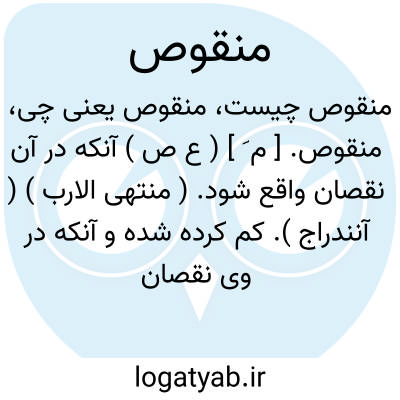 منقوص. [ م َ ] ( ع ص ) آنکه در آن نقصان واقع شود. ( منتهی الارب ) ( آنندراج ). کم کرده شده و آنکه در وی نقصان واقع شود. ( ناظم الاطباء ).