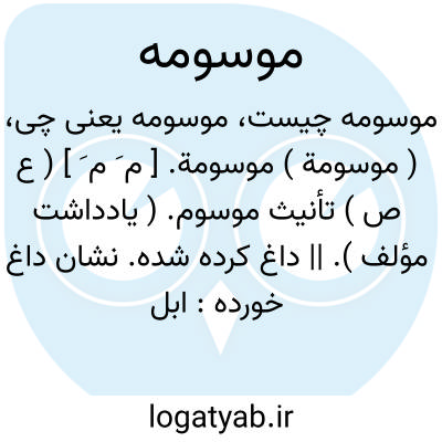 ( موسومة ) موسومة. [ م َ م َ ] ( ع ص ) تأنیث موسوم. ( یادداشت مؤلف ). || داغ کرده شده. نشان داغ خورده: ابل موسومة؛ شتران داغدار.( ناظم الاطباء ). || ارض موسومة؛ زمین باریده. ( منتهی الارب ) ( ناظم الاطباء ) ( از آنندراج ). || درع موسومة؛ زرهی که پایین آن را به شبه آراسته باشند. ( منتهی الارب ) ( آنندراج ) ( ناظم الاطباء ).