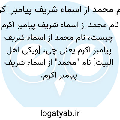 [ویکی اهل البیت] نام "محمد" از اسماء شریف پیامبر اکرم. مشهورترین اسماء پیامبر اکرم صلی الله علیه و آله محمد است که قرآن مجید به آن ناطق است، و اشتقاق او از حمد است، و بنای این اسم مفید مبالغه است در بلوغ غایت محمدت. و دیگر از اسماء شریفه آن حضرت أحمد است که قرآن به آن نیز ناطق است و همچنین اشتقاق آن از حمد است همچو احمر از حمرت، و جایزست که نعت باشد در حمد، و ابن عباس فرموده که اسم آن حضرت در تورات احمد است و ضحوک القتال یعنی پاک نفسی که حریص باشد بر جهاد که مرکب او شتر باشد، و ملبس او شمله، و ماکل او نان ریزه، و شمشیر بر گردن حمایل کرده باشد.