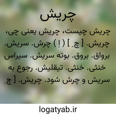 چریش. [ چ ِ ] ( اِ ) چرش. سریش. برواق. بروق. بوته سریش. سیراس خنثی. خنثی. تیقلیش. رجوع به سریش و چرش شود.