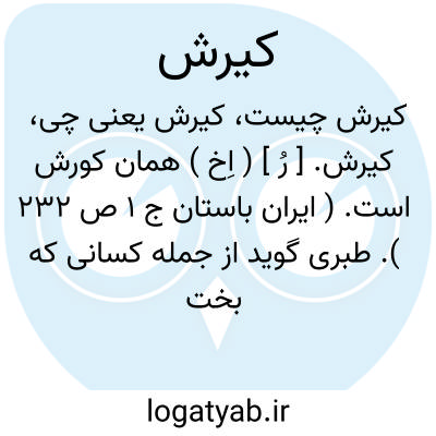 کیرش. [ رُ ] ( اِخ ) همان کورش است. ( ایران باستان ج 1 ص 232 ). طبری گوید از جمله کسانی که بخت نصریا بخترشه گماشته بهمن با خود به بیت المقدس برد، کیرش [ بن ] کیکوان از ولد غیلم بن سام خازن بیت مال بهمن بود و دیگر اخشویرش بن کیرش بن جاماسب الملقب بالعالم و دیگر بهرام بن کیرش بن بشتاسب بودند.. و جای دیگر گوید من لدن تخریب بخت نصر بیت المقدس الی حین عمرانها فی عهد کیرش بن اخشویرش اصبهبد بابل.... و کیرش همان کورش هخامنشی است و اخشویرش نیز خشیارشا پسر اوست. ( حاشیه مجمل التواریخ و القصص صص 213 - 214 ): تا بنی اسرائیل بازآمدند و دانیال پیغامبر علیه السلام در عهد بهمن اسفندیار به فرمان کیرش که پادشاه بود از دست بهمن [ بر بنی اسرائیل مهتر بود ] و به عمارت بیت المقدس مشغول شدند. ( مجمل التواریخ و القصص ص 213 ). و عمر بیت المقدس بعد خرابه سبعین سنة بهمن احد ملوک الفرس و هو کیرش. ( روضة المناظر ابن شحنه، از یادداشت به خط مرحوم دهخدا ). رجوع به کورش شود.