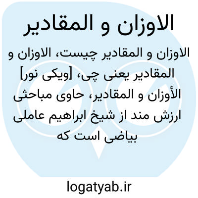 [ویکی فقه] الاوزان و المقادیر (کتاب). کتاب« الأوزان و المقادیر»، نوشته جناب استاد شیخ ابراهیم عاملی بیاضی است که اوزان و مقادیر مورد نیاز یک فقیه را در ابواب گوناگون فقهی، از نگاه جمیع فرهنگ ها مورد بررسی قرار داده است.