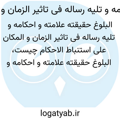 [ویکی نور] البلوغ حقیقته، علامته و أحکامه و تلیه رسالة فی تأثیر الزمان و المکان علی استنباط الاحکام، تألیف آیت الله جعفر سبحانی (1308-)، در موضوع احکام و شرایط بلوغ از دیدگاه فقه استدلالی شیعه بحث می کند.