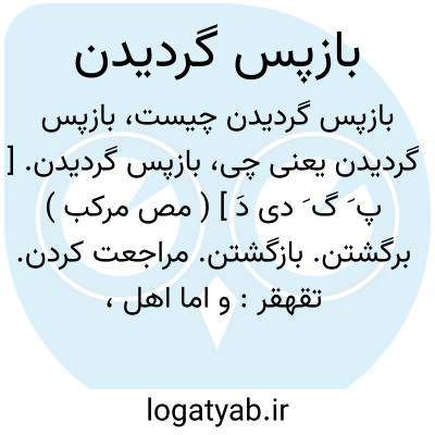 بازپس گردیدن. [ پ َ گ َ دی دَ ] ( مص مرکب ) برگشتن. بازگشتن. مراجعت کردن. تقهقر: و اما اهل، مرا نه اهل است و نه مال، بازپس گردید و از پیش عمر بیرون آمد. ( تاریخ قم ص 305 ).