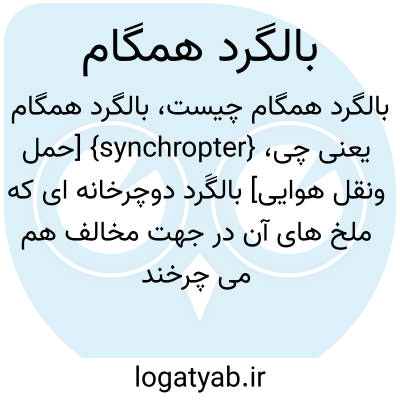 {synchropter} [حمل ونقل هوایی] بالگَرد دوچرخانه ای که ملخ های آن در جهت مخالف هم می چرخند