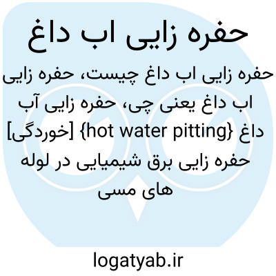 حفره زایی آب داغ {hot water pitting} [خوردگی] حفره زاییبرق شیمیایی در لوله های مسی سامانۀ آب گرم خانگی، ناشی از رسوب ذرات بسیارریز در جدارۀ داخلی لوله ها که نقش کاتد را ایفا می کند و سبب از میان رفتن فیلم (film ) محافظ مس میشود