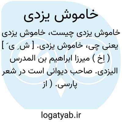 خاموش یزدی. [ ش ِ ی َ ] ( اِخ ) میرزا ابراهیم بن المدرس الیزدی. صاحب دیوانی است در شعر پارسی. ( از الذریعه الی تصانیف الشیعه آقابزرگ طهرانی جزء 1 قسم 9 ص 286 ).